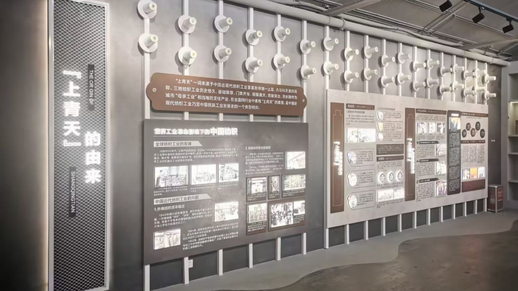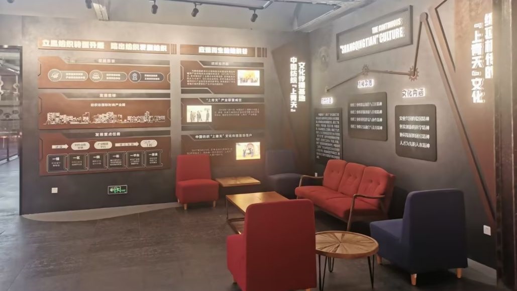 城市:山東青島市北,時間:20232年9月-2023年1月。設計理念:展廳布局典雅,灰色為主調,咖啡色添彩,聲光電交織,大屏展現上青天文化魅力。傳承文化精髓。