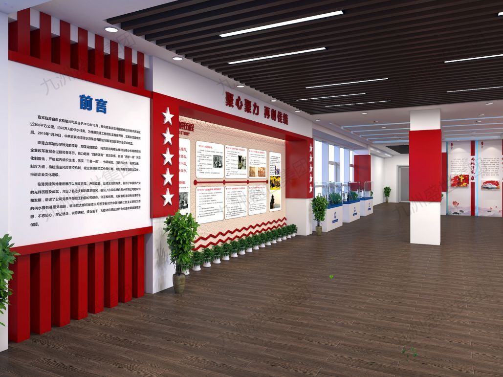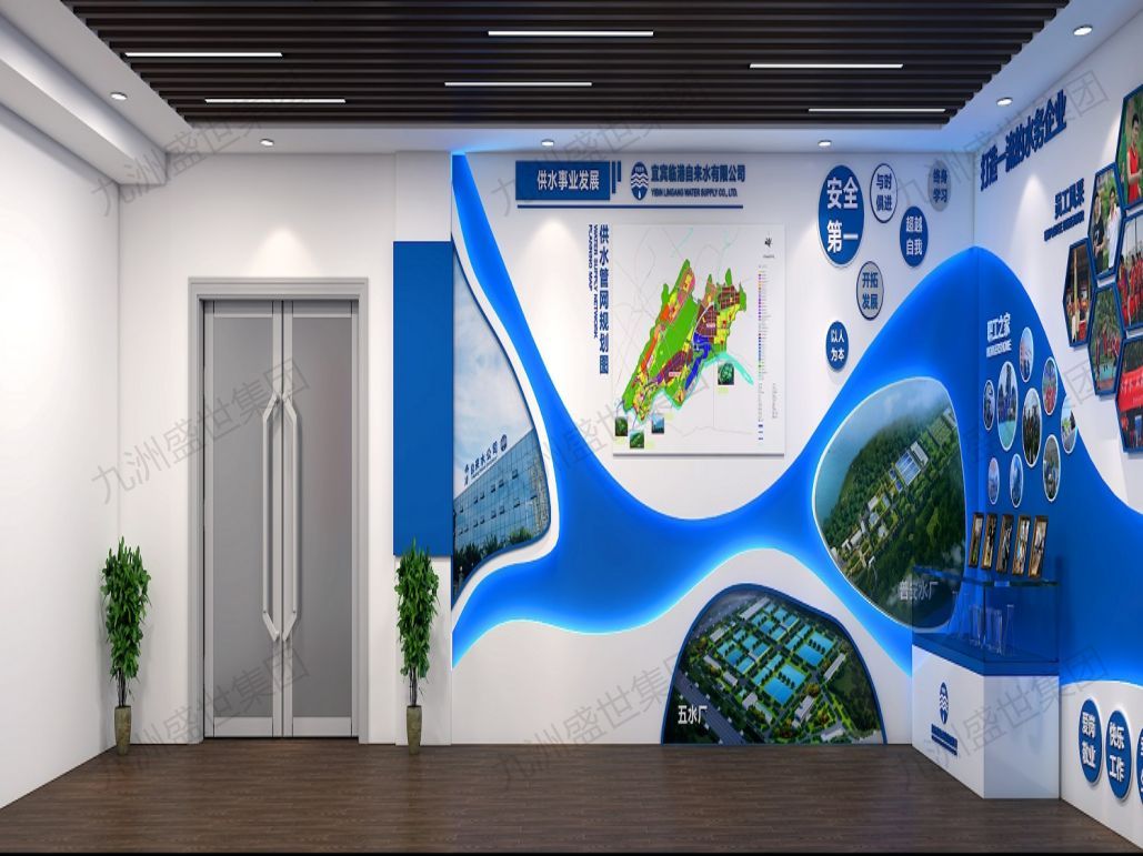 設(shè)計(jì)思路:以傳承與弘揚(yáng)水務(wù)文化為核心,通過歷史展示、技術(shù)解讀、互動(dòng)體驗(yàn)等形式,展現(xiàn)水務(wù)行業(yè)的深厚底蘊(yùn)與公司特色。運(yùn)用現(xiàn)代設(shè)計(jì)手法,融合傳統(tǒng)元素,打造兼具時(shí)代感與文化氣息的展示空間,增強(qiáng)員工歸屬感,提升公司品牌形象。
