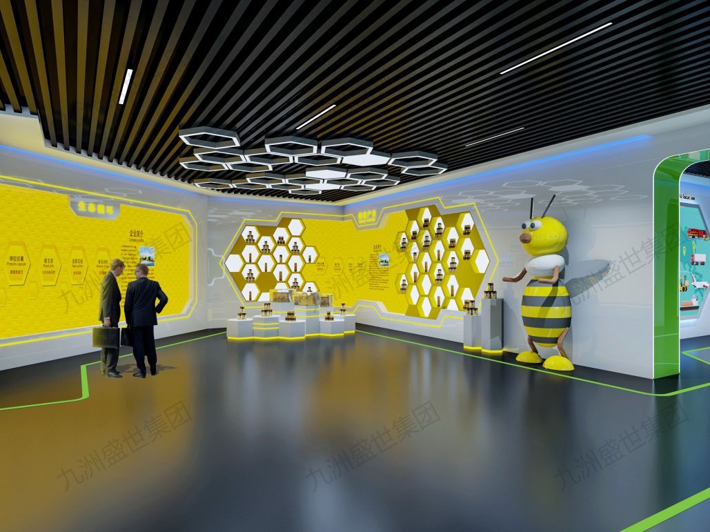 城市:山東臨沂,時間:2021年8月-10月。設計理念:蜂巢科技展廳布局獨特,白色為主調,黃色綠色點綴,展示蜂巢創新產品魅力,突顯蜂巢科技產品的獨特。