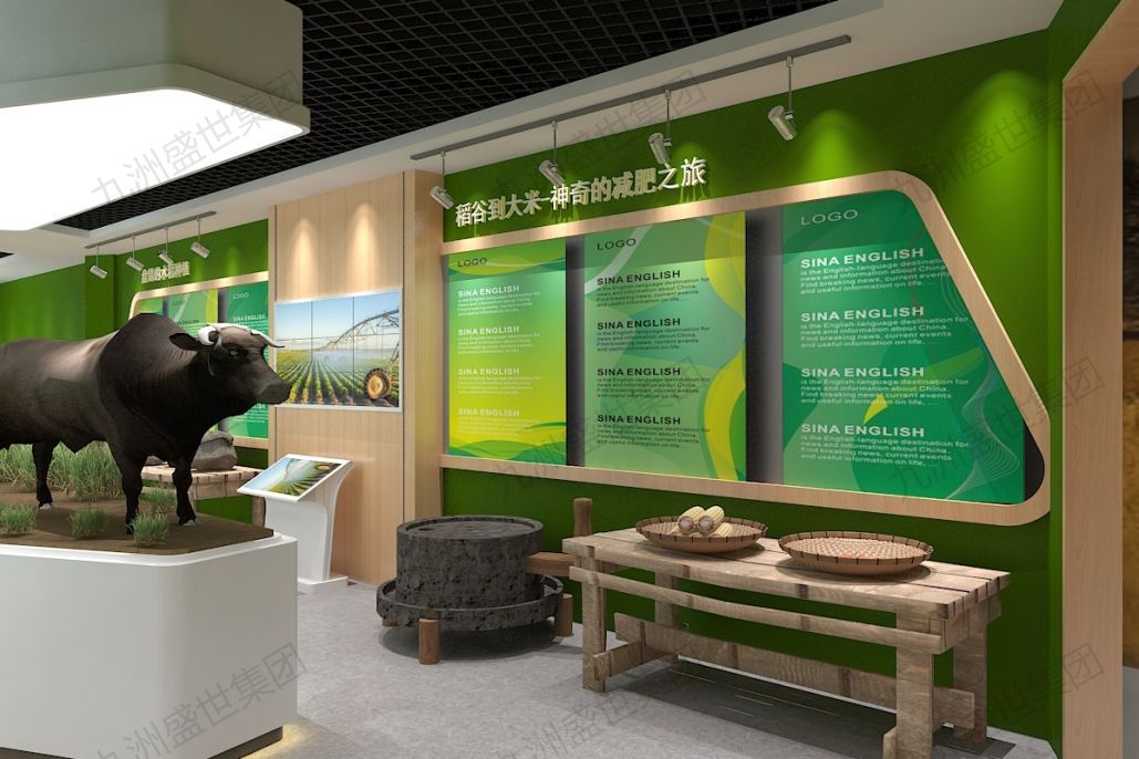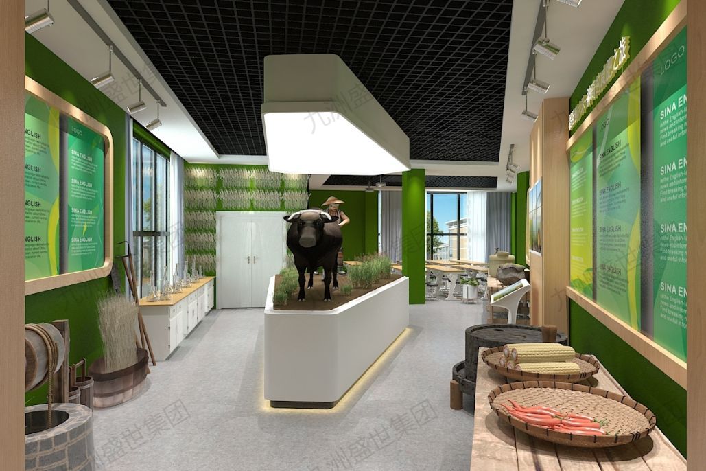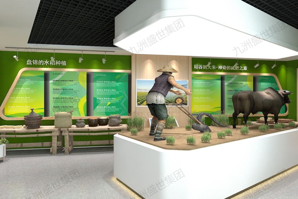 城市:盤錦,時間:2017年2月-5月。設計理念:展廳設計應以綠色生態為核心,體現農牧業與自然環境的和諧共生。從展廳的布局、裝飾到展示內容,都應強調綠色元素