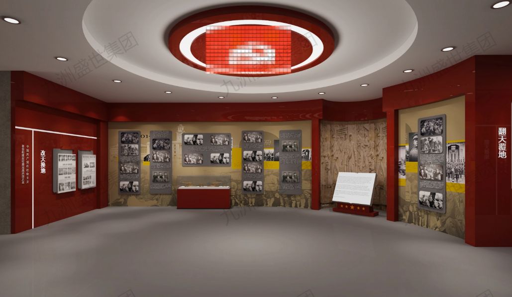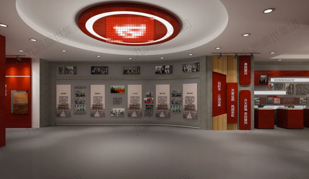 設計思路:展廳應以清晰的時間線展示黨的歷史發展脈絡,包括黨的成立、發展壯大、各個歷史時期的重大事件和決策等。通過圖文、影像資料,讓參觀者了解黨的光輝歷程和豐功偉績。